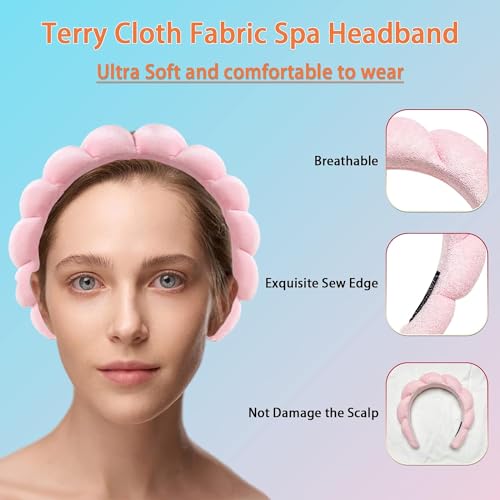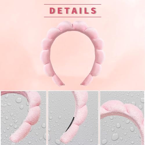 Ycfish - Puffy Makeup Headband Spa Headbands for Women Sponge & Terry Towel Cloth Fabric Cute Skincare Headband for Face Washing, Makeup Removal, Shower, Facial Mask (Dusty Pink)