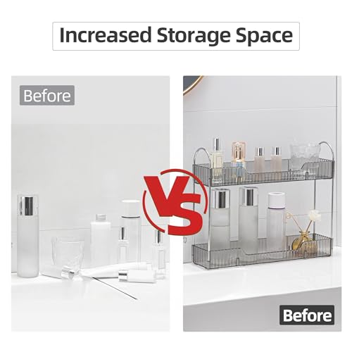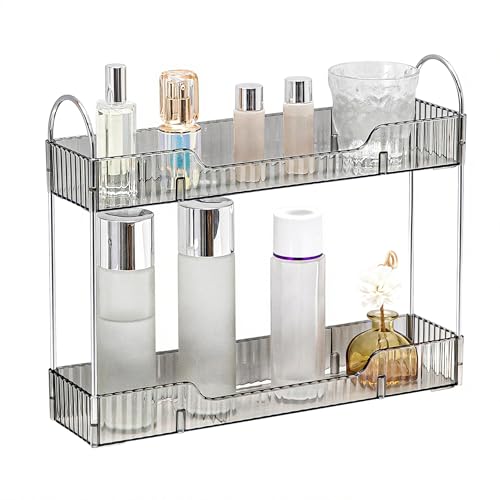 YCIA&DONE - YCIA&DONE 2 Tiers Narrow Vanity Makeup Organizer, Bathroom Organizers Countertop Slim, Perfume Holder Skincare Storage Cosmetic Shelf Spice Rack, for Small Desktop Counter Space, Smoky Gray