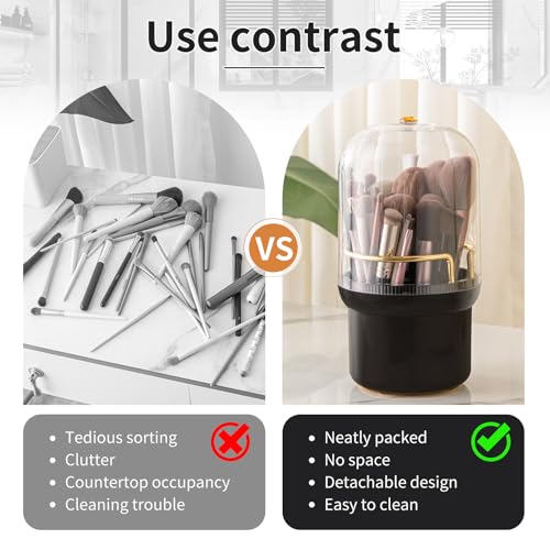 - 【Dust-proof Lid】The high enough dust-proof lid protects your makeup brushes at different heights from dust, so you no longer need to shake off the annoying dust on your brushes before applying makeup