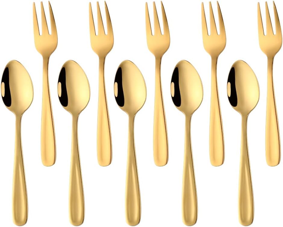 Buyer Star - YDware Stainless Steel Espresso Spoons, Small Cake Forks Set, 10 Pieces Espresso Spoons, Dessert Forks Set, Fruit Forks, Coffee Spoons, 136 mm Long, Reusable (Gold)