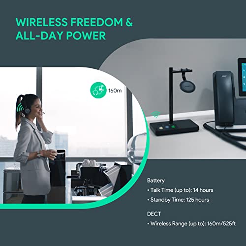 Yealink - Yealink WH62 Wireless DECT Headset Teams Zoom UC Certified, Work for PC Computer Laptop Mac, Office Desk Phone Softphones VoIP Telephones (WH62 for 3rd-Party Phone)
