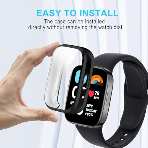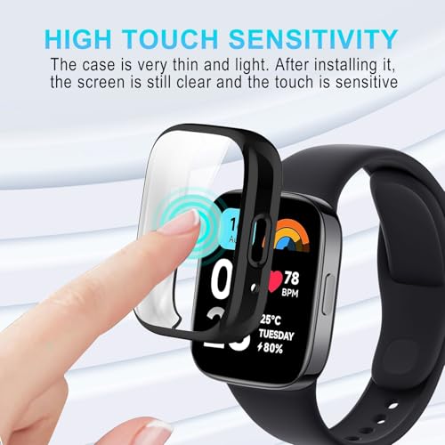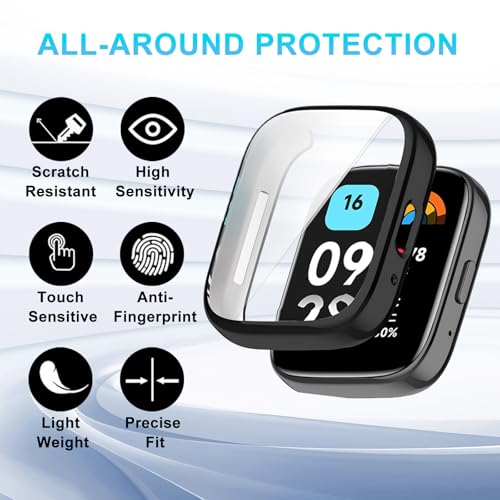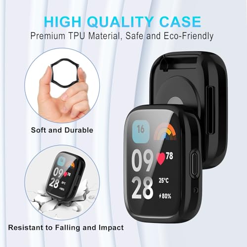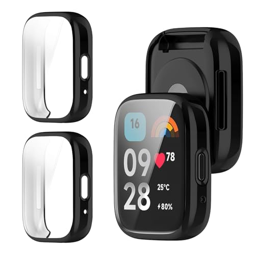 YealRed - جراب حماية من ييلريد متوافق مع ساعة شاومي ريدمي 3 اكتيف [عبوة من قطعتين]، جراب واقي ناعم من البولي يوريثين الحراري مضاد للصدمات ومضاد للخدش لساعة شاومي ريدمي ووتش 3 اكتيف (اسود + اسود)
