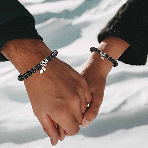 Generic - Yean 2Pcs Couple Distance Bracelets Beaded Magnet Matching Bracelet Attract Relationship Bracelet Jewelry for Women Men (black)