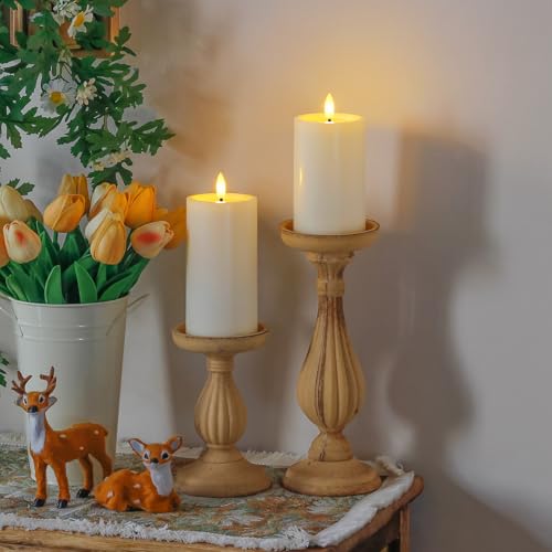 Yeelida - شموع خارجية بدون لهب مقاومة للماء مع جهاز تحكم عن بعد عملي ومؤقت دورة تعمل بالبطارية وتاثير شحوم LED وامضة، عمود بلاستيكي يدوم طويلا (عاجي، 3 انش × 4 انش 5 انش 6 انش 7 انش) من ييليدا