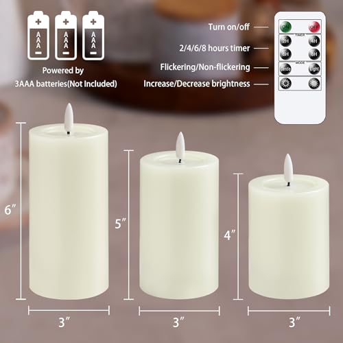 Yeelida - Remote Flameless Flickering Pillar Candles with Candle Grease Effect,Pack of 3 Ivory LED Battery Oprated 2/4/6/8 Hours Timer Real Wax Electric Candles(3x4,5,6 Inches)