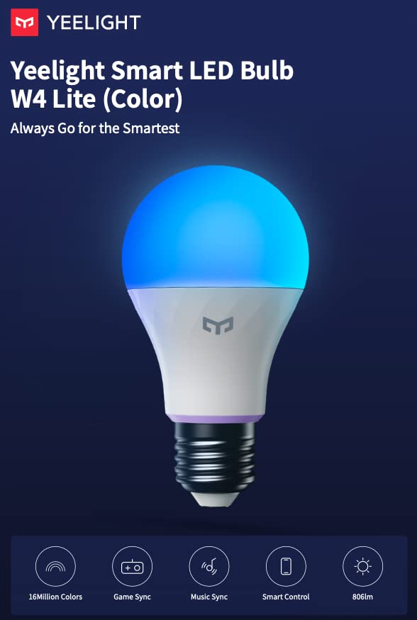 YEELIGHT - يي لايت لمبة LED ذكية W4L (متعددة الالوان) ابيض، e27، 8.0 واط