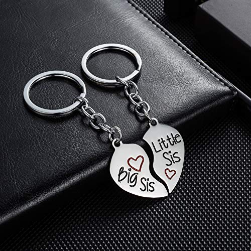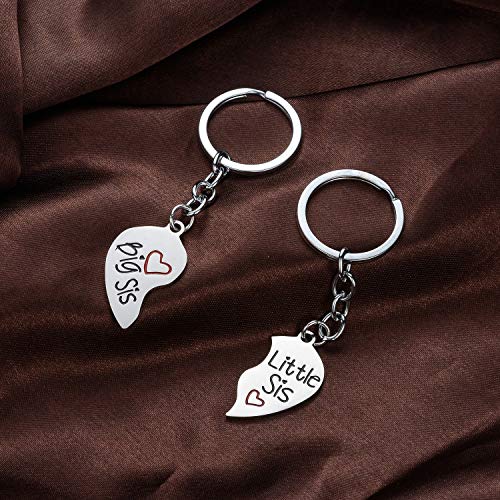 YEEQIN - YEEQIN 2PC Matching Big Sis Little Sis Red Split Heart Halves Sisters Pendant Keychain Keyring Set