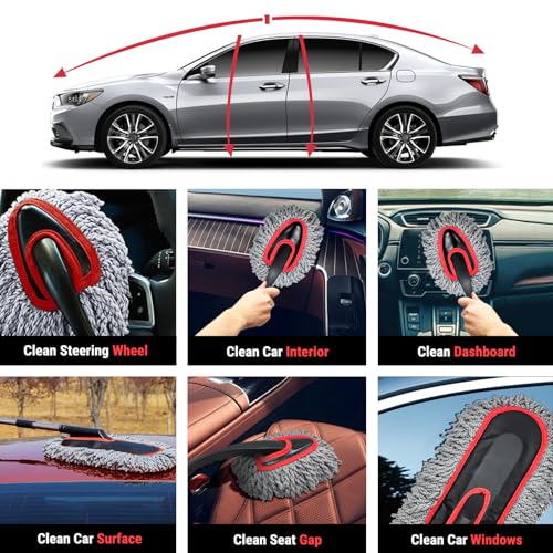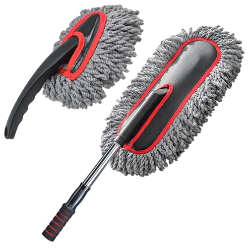 YeewayVeh - YeewayVeh Car Duster Kit, 2 PACK Car Dust Brush Set with Microfiber Pollen Dusters Scratch Free, Extendable Car Duster Brush & Dash Duster for Car Exterior Interior Cleaning Tools, Red&Gray