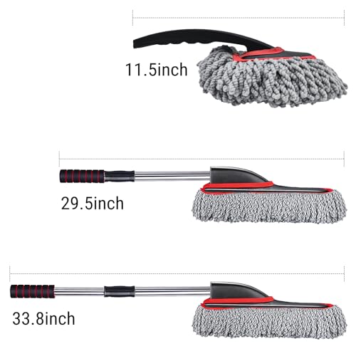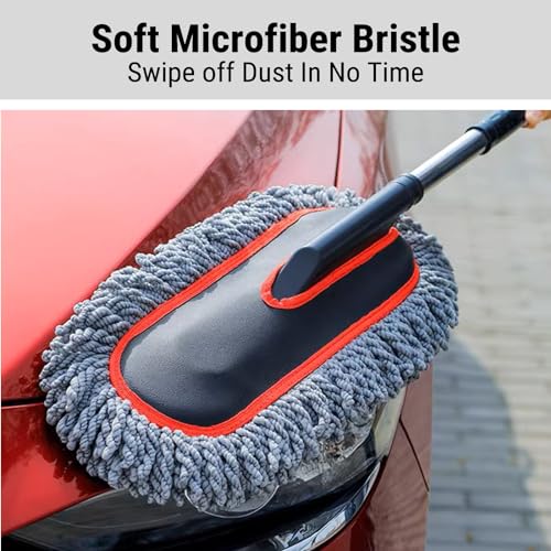 - CAR DUSTER EXTERIOR - Large area duster swipe off dust in no time. Extended duster the length is 27"-33", car cleaner exterior is easier to reach the car roof. perfect for pollen & dusting off your vehicle such as Sedan, JEEP, RV, SUV, Pickup, Truck, Tractor, Motorcycle etc.,