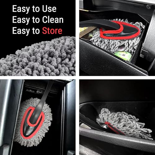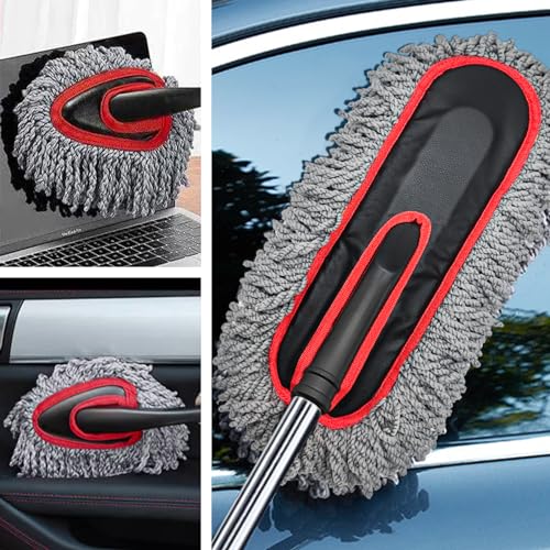 - CAR DUSTER INTERIOR - Mini car duster helps in cleaning difficult to reach places, car dash duster fits for cleaning car interior, console, electronics, dashboards, buttons, steering wheel, leather seat , head light, windows and household products sunch as computer desk, keyboards, countertops, closets, mirrors, pictures and decor on the walls, shelves and so on.
