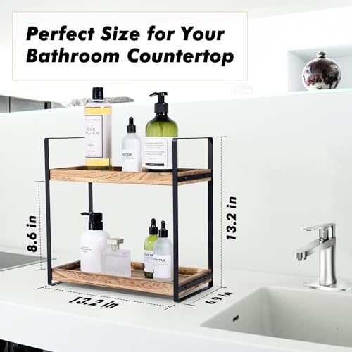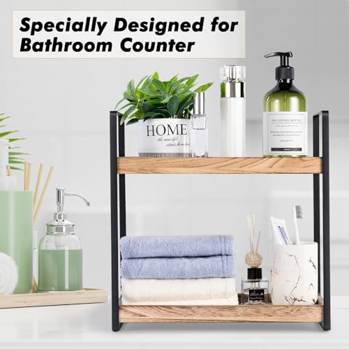 YelaJoy - YelaJoy 2-Tier Countertop Organizer - Solid Wood Shelf with Rust-Resistant Metal for Easy Bathroom Organization and Stylish Farmhouse Decor