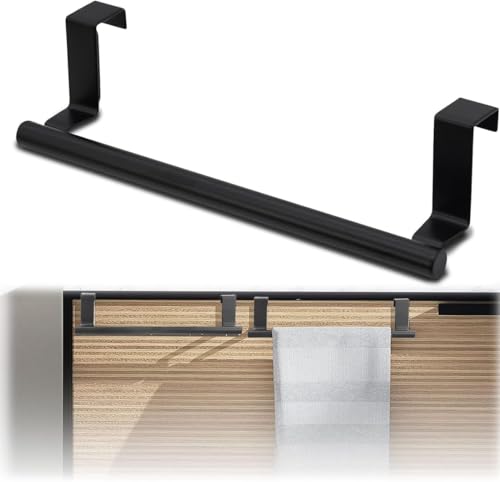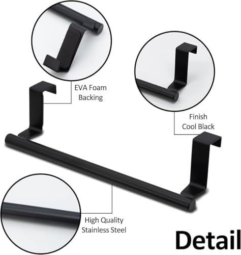 YelaJoy - حامل مناشف باب الخزانة من يلا جوي، حامل مناشف اطباق من الستانلس ستيل، حامل مناشف باب خزانة المطبخ، حامل منشفة فوق الخزانة، رف منشفة منشفة للحمام والمطبخ، اسود