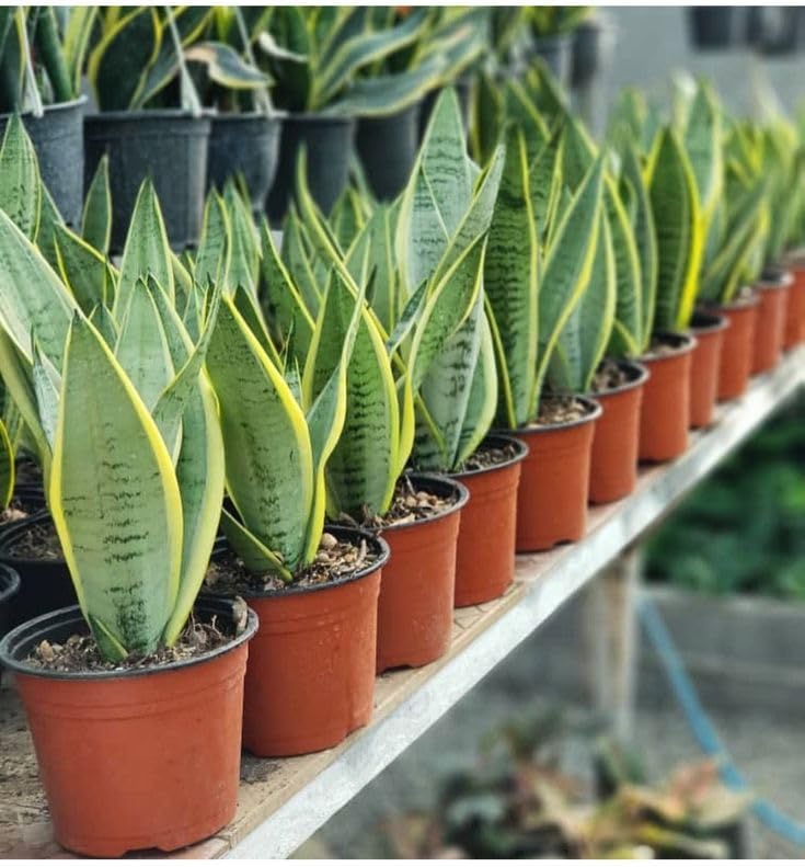 - نبات داخلي مميز: سانسيفيريا تريفاسياتا لوريتي بأوراق خضراء جميلة مع حواف صفراء ذهبية