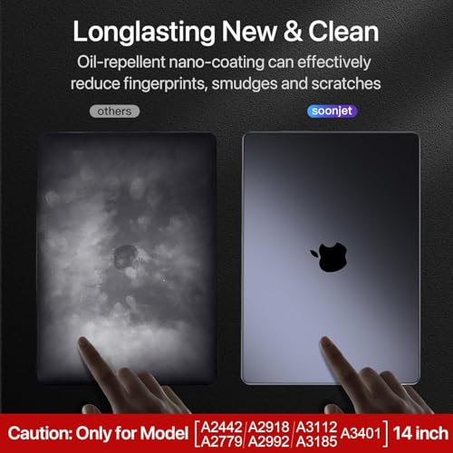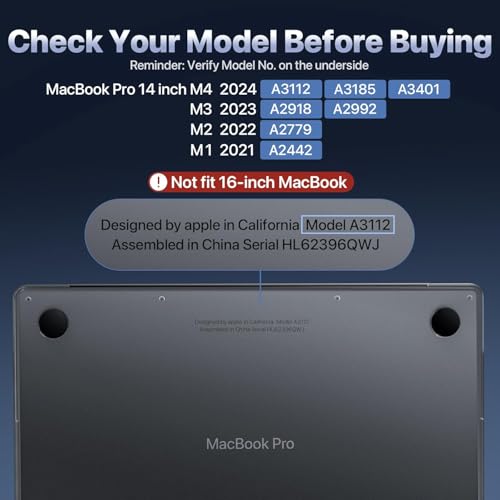 - ★ Please kindly check the model number "Axxxx" on the back of the laptop before your purchase, make sure you choose the exact same model number as the listing title stated "A3112" or "A3185" or "A3401" or "A2918" or "A2992" or "A2779" or "A2442" that compatible with MacBook Pro M4 14 inch case, compatible with MacBook Pro M3 14 inch case, compatible with MacBook Pro M2 14 inch case and compatible with MacBook Pro M1 14 inch case. WARNING: This case is NOT compatible with other model laptops.