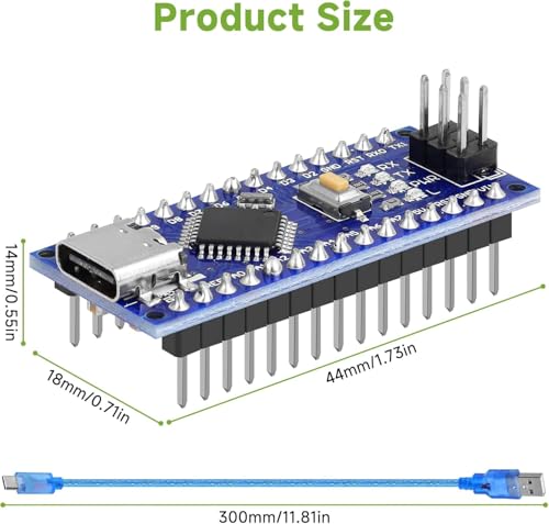 YELUFT - لوحة نانو V3.0 مع كيبل ATmega328P MCU CH340G وحدة تحكم دقيقة 5 فولت 16 متر متوافقة مع اردوينو نانو (ملحوم، منفذ نوع سي) قطعة واحدة