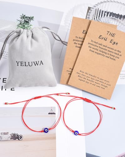 YELUWA - YELUWA 2/3 Pcs Evil Eye Bracelets for Women Men Good Luck Jewelry Nazar Kabbalah Protection Couple Friendship Family Ojo Turco Strings Lucky Gift Tibetan Buddhist Bracelet Red String of Fate Bracelet