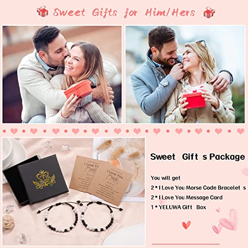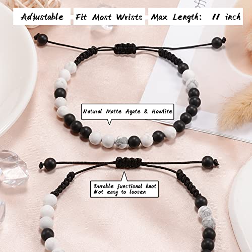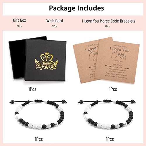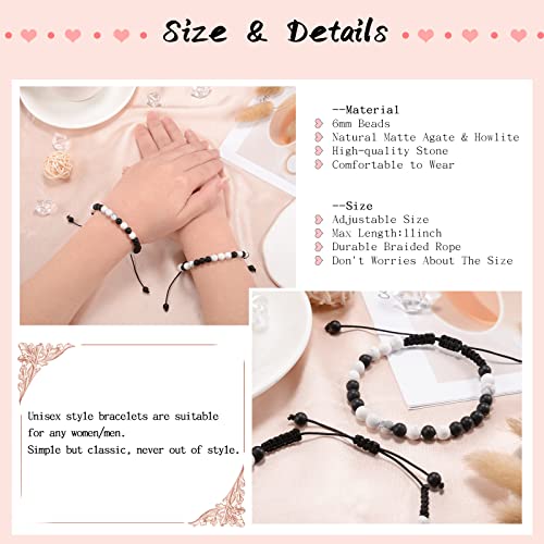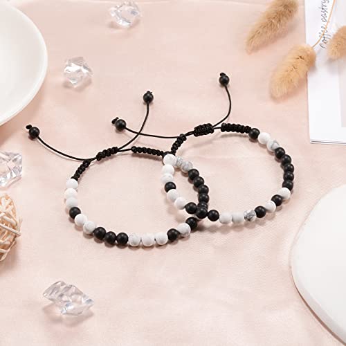 YELUWA - YELUWA 2 Pieces Black White Beads Bracelet Promise Pinky For Couples Soul Twin Best Friends Matching Distance Relationship Gifts For Women Men, Stainless steel, bead