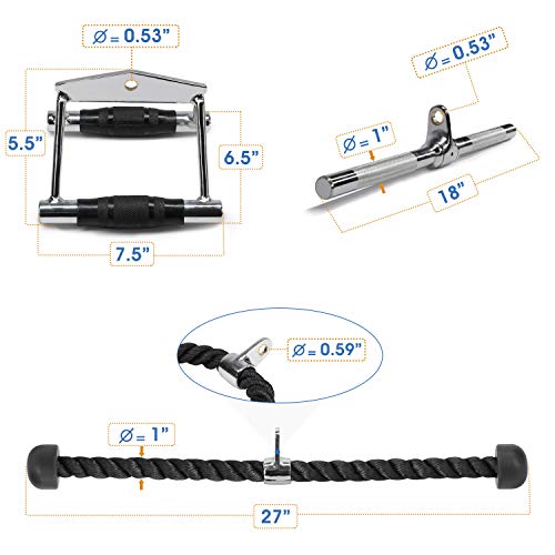 - عبوة 3 في 1: تتضمن العبوة 7. 5 انش × 6. 5 انش × 5. مقبض مزدوج على شكل حرف D بطول 5 انش (طول × عرض × ارتفاع)، وحبل ثلاثي الرؤوس بطول 27 انش و6. قضيب بطول 5 انش على شكل حرف V، مجموعة رائعة من معدات الصالة الرياضية للاستخدام في مجموعة متنوعة من التمارين وزيادة إمكانات لياقتك البدنية