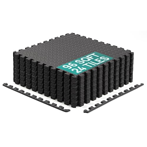 Yes4All - بلاط إسفنجي متشابك من ياس فور اول، بلاط أرضيات فوم غير قابل للانزلاق للجيم والمنزل، أسود، 24 بلاطة، مقاس 61 × 61 × 1 سم، لتغطية مساحة 9 متر مربع