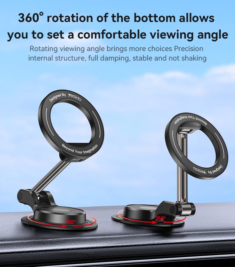 YESIDO - قاعدة تثبيت مغناطيسية للسيارة C218، دعامة مغناطيسية مزدوجة المحور تدور 360 درجة وقابلة للثني تتميز بلاصق تثبيت قوي وهيكل من سبيكة الزنك والبلاستيك، من يسيدو