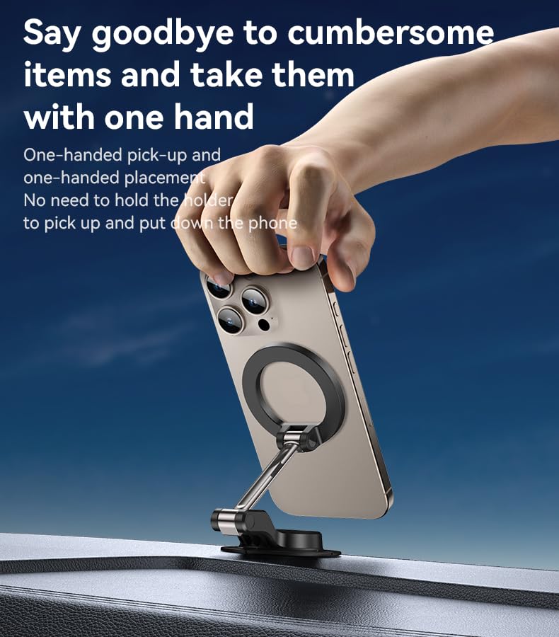 - التشغيل بيد واحدة والتلاؤم الشامل – يمكن تركيب الموبايل أو إزالته بسهولة باستخدام يد واحدة فقط، يتوافق مع غالبية الموبايلات ويناسب الأغطية المزودة بتقنية ماج سيف أو تلك التي تحتوي على شريحة مغناطيسية.