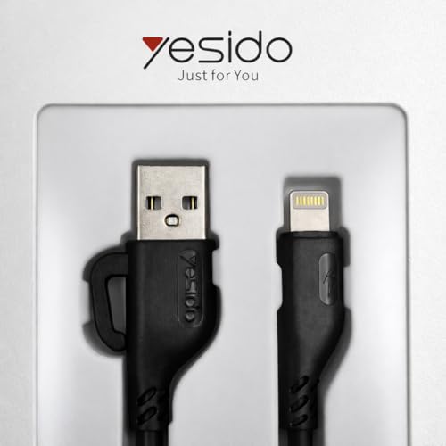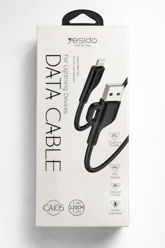 YESIDO - Yesido Charging and Data Transfer Cable Compatible with Lightning for iPhone, 1.2m, Durable PVC, Black, CA105