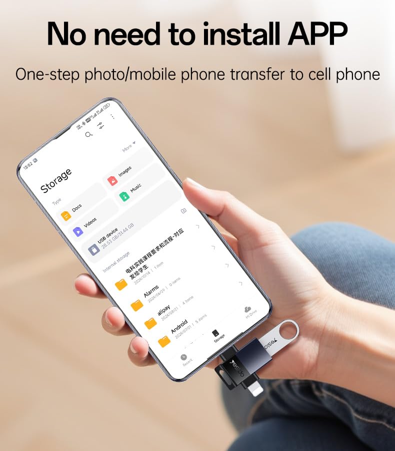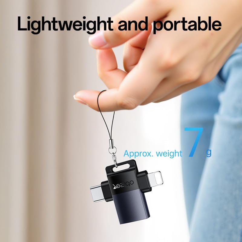 - ✅ 2-in-1 Design: Type-C & Lightning – Smart dual-interface OTG supports both iPhones and Android phones.