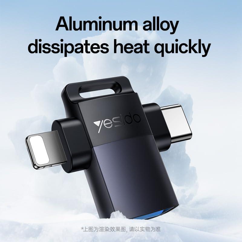 YESIDO - Yesido GS35 OTG Adapter – 2-in-1 Type-C & Lightning to USB 3.0 Converter | 5Gbps High-Speed Data Transfer | OTG Adapter for Android, iPhone, MacBook, iPad, Laptops | 6-Month Warranty
