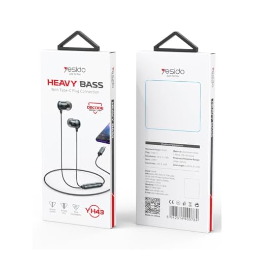 Yesido - سماعة أذن سلكية عالية مصنوعة من خليط الألومنيوم بمنفذ USB-C وطول 1.2 متر من يسيدو (تأتي مع ميكروفون)