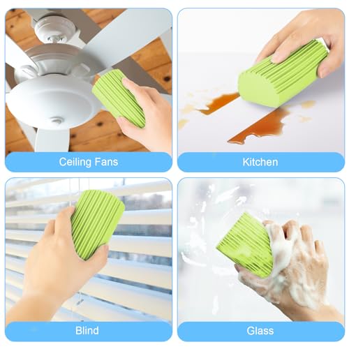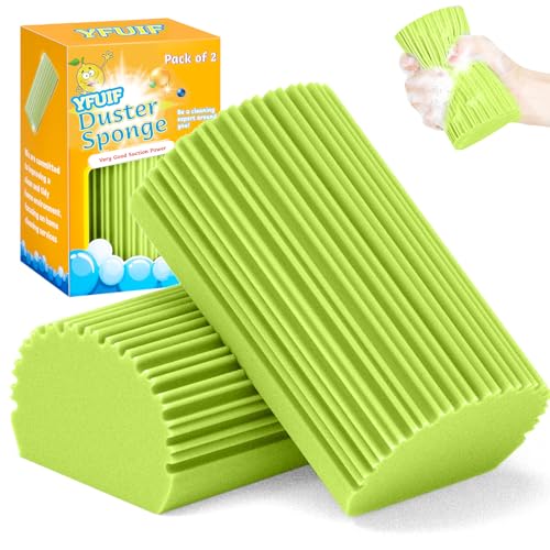 YFUIF - 2-Pack Damp Clean Duster Sponge, Magic Cleaning Sponge Baseboard Cleaner Duster Sponge Tool, Dusters for Cleaning Baseboards, Vents, Mirrors, Ceiling Fan & Cobweb, No Dust Flying and Spreading