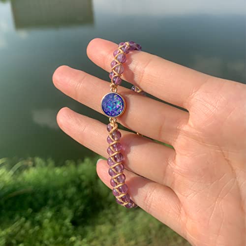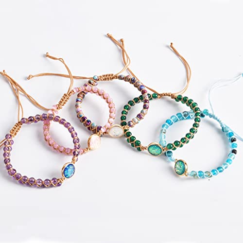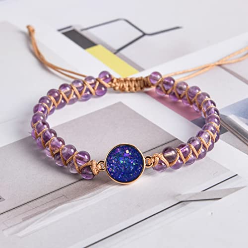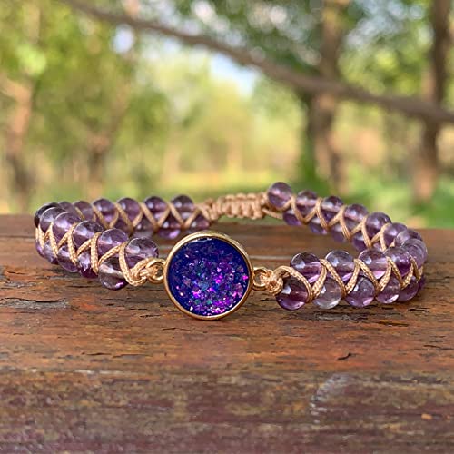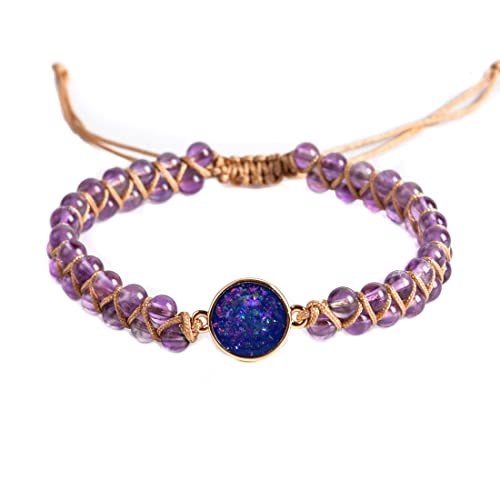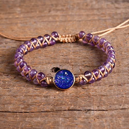 YGLINE - YGLINE Boho Handmade Natural Stone Bead 3 Row Wide Wrap Wrist Statment Bracelet Jewelry Collection (purple), adjustable, Stone