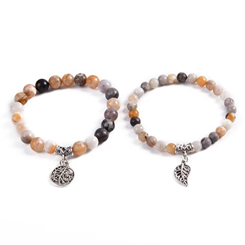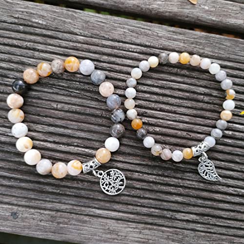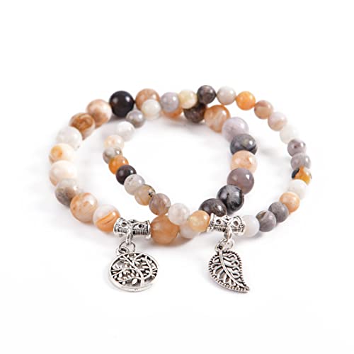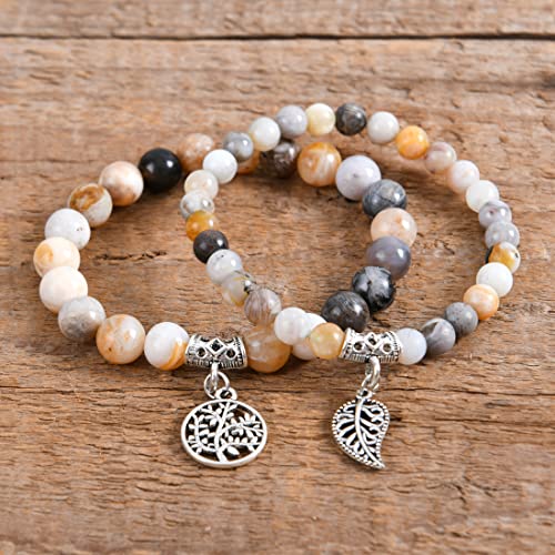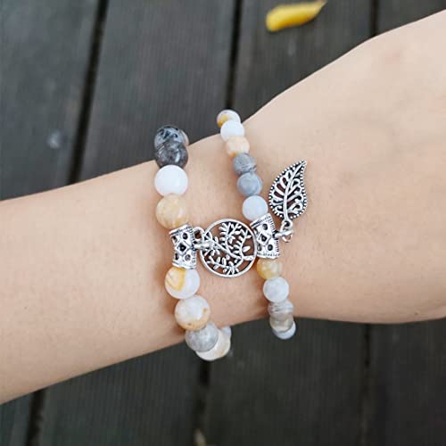 YGLINE - واي جلين سوار خرز من الاحجار الكريمة الطبيعية للنساء - سوار كريستال ريكي قابل للتمدد بدلاية على شكل شجرة الحياة واوراق الشجر