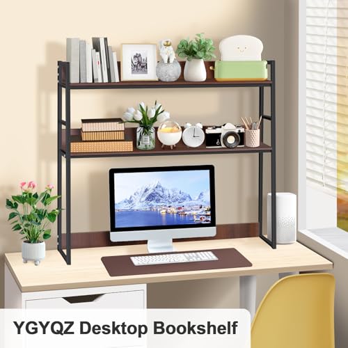 YGYQZ - YGYQZ Desktop Shelf Computer Storage Rack - Organizer Adjustable Desk Bookshelf Display Shelf for Office Home (BlackWood-95cm)