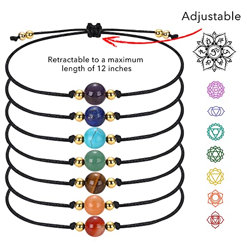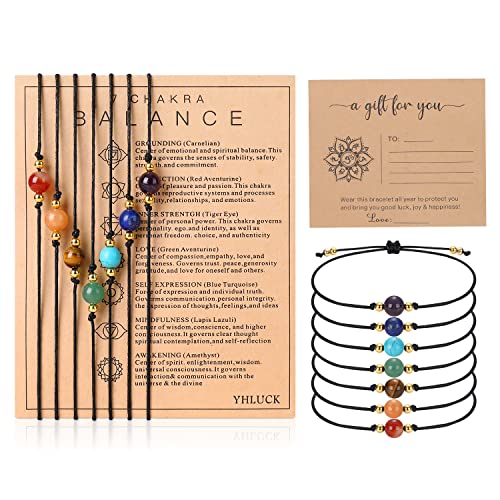Yhluck - سوار كريستال طبيعي يدويا مزين بالاحجار الكريمة مع بطاقة امنيات وتصميم مضفر قابل للتعديل خلخال من مجموعة مجوهرات ة ك والاصدقاء سبع قطع حجر كريستال, احجار كريمة حجر كريستال للبالغين من الجنسين للنساء