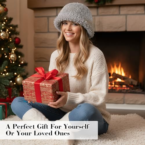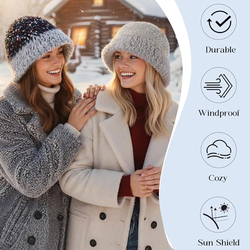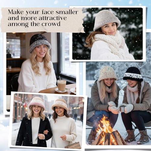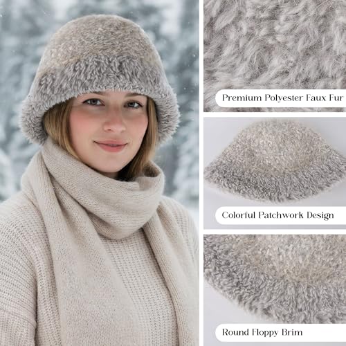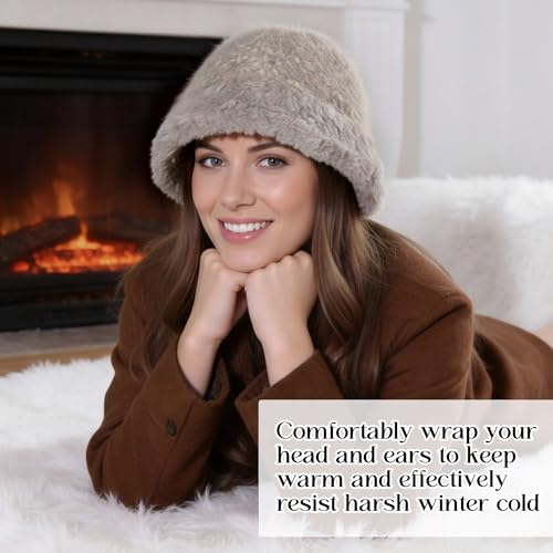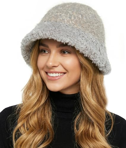 YI HENG MEI - Women Knit Bucket Hat, Fluffy Winter Fisherman Hat Fuzzy Soft Warm Beanie Caps Women Cloche Caps Warm Bowler Hats