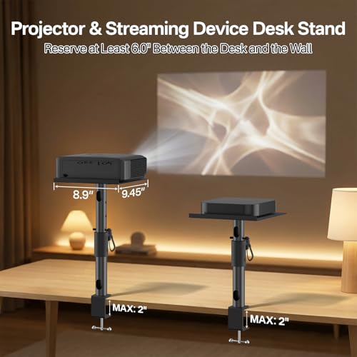 - Dual Stand Set for a Complete Setup – The desk clamp stands includes two study stands - one for your projector and one for your streaming device, game console or laptop. Create a clean, organized home theater or presentation setup with everything elevated and within reach.