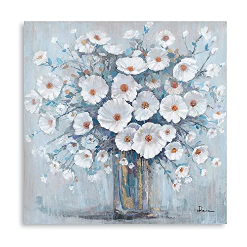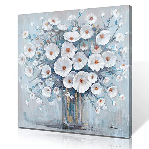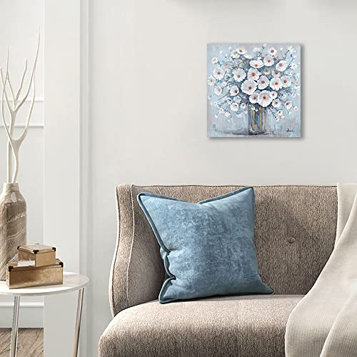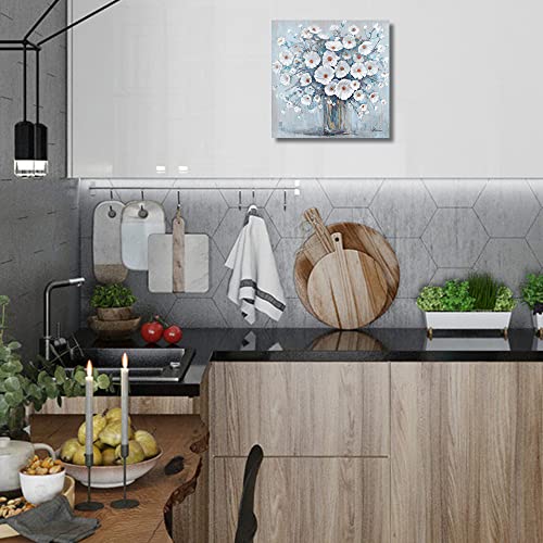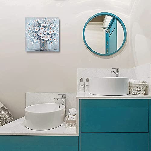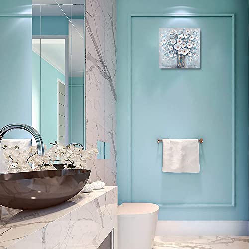 Yidepot - Yidepot Blue Bathroom Wall Art Decor: White Flower Grey Vase Bottle Pictures For Bathroom Wall Decor Kitchen Gallery Framed Print Ready to Hang for Farmhouse Decorations 13.5x13.5inch