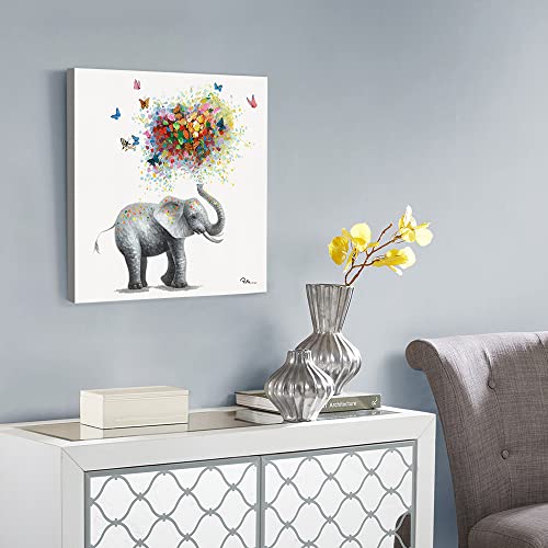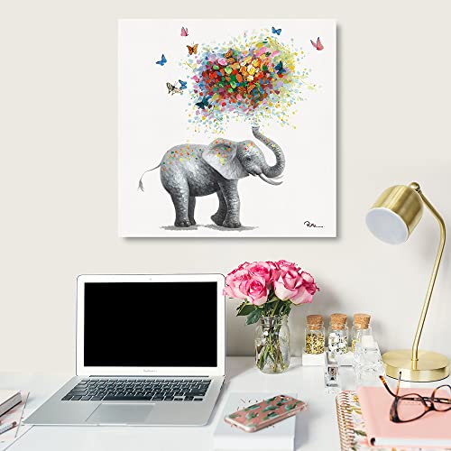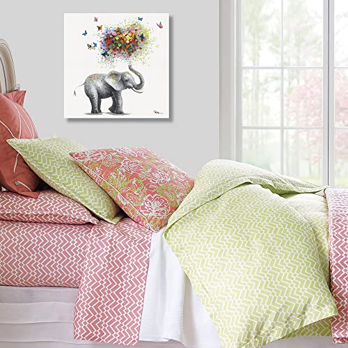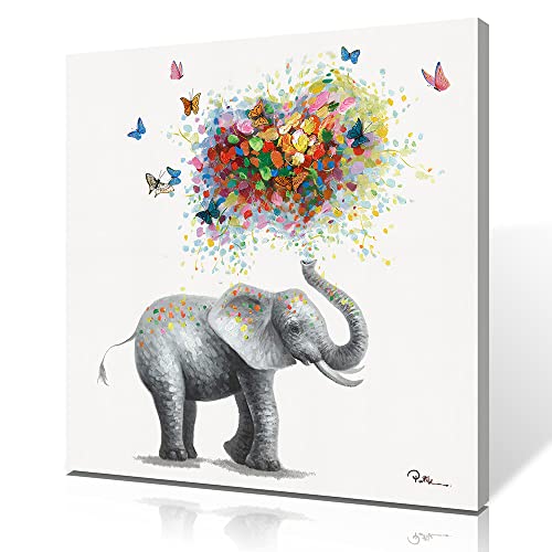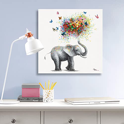 Yidepot - Yidepot Butterfly Elephant Wall Art Print: Colorful Heart Shaped Balloon for Kids' Nursery Wall Decor Canvas Framed Ready to Hang (24"x24"x1 Panel)