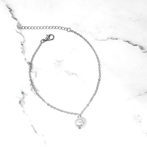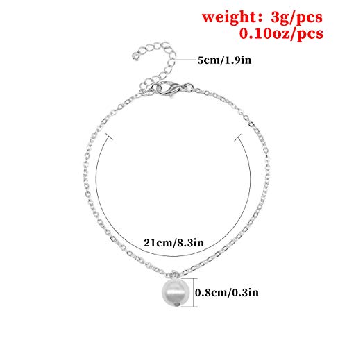 Yienate - Anklets Pearl Ankle Bracelet Charm Dainty Foot Jewelry for Women and Girls Summer Barefoot Beach Anklet (Silver)