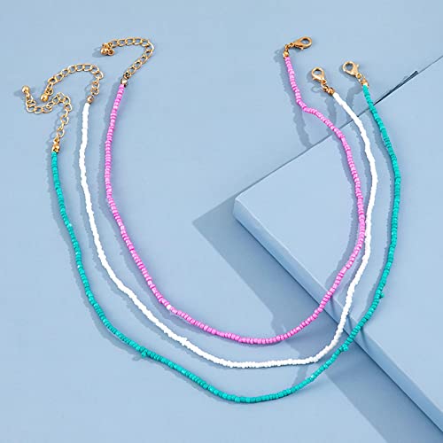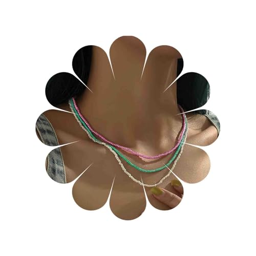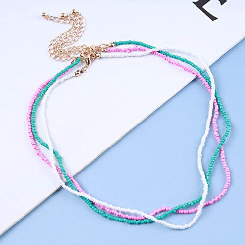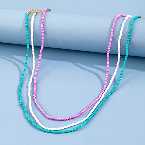 YienDoo - YienDoo Boho Layered Bead Necklace Choker Colorful Seed Bead Necklace Rainbow Beaded Necklace Multi Color Bead Choker Necklaces Beach Necklace Jewelry for Women and Girls
