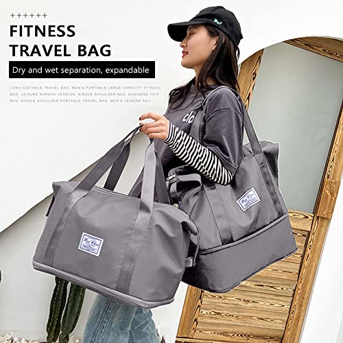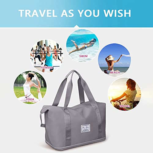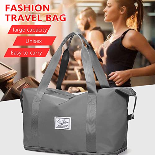 YiFrZour - Travel Bag Women, Foldable Travel Bag for Travel, Women's Large Travel Bag with Wet Compartment for Gym Bag, Sports Tote Gym Bag, Shoulder Weekender Overnight Bag for Women, grey
