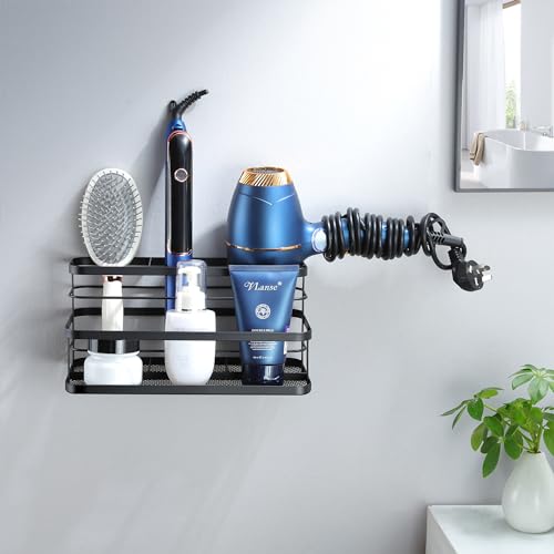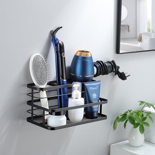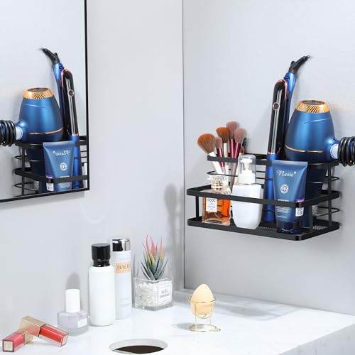 - HOT RESISTANT STORAGE - Don't worry about hot styling tools damaging your bathroom or vanity countertops or other items, let alone having to wait until they cool down to put things away. Our hair dryer holder is made of high-quality stainless steel, specially designed to withstand high temperatures, providing a safe and convenient storage solution for your hair straighteners, curling irons, and more.