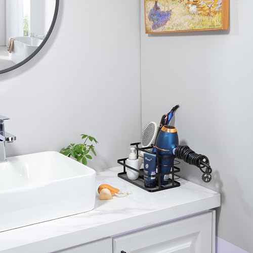 - MULTIFUNCTIONAL CADDY - The hair dryer holder has 4 compact compartments that you can use to help you better organize and secure your hair dryer, flat iron, curling iron, and hair straightener. However, it is more than just a place for your hair styling tools. It also helps you keep your styling and makeup tools (such as lotions, brushes, and combs) neatly organized.