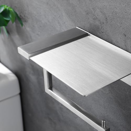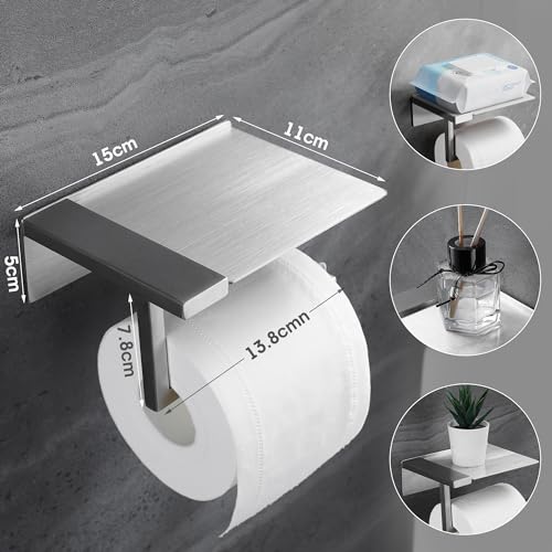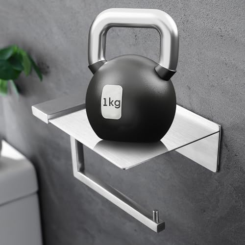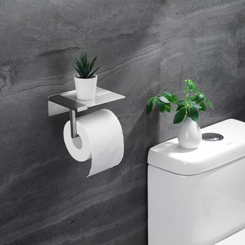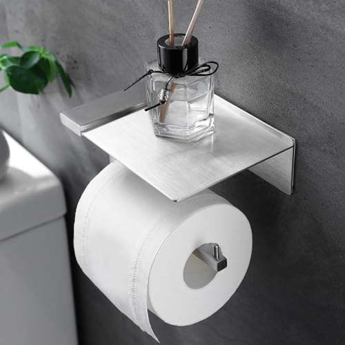 YIGII - حامل ورق تواليت مع رف - حامل ورق التواليت بدون حفر من الستانلس ستيل ذاتي اللصق للحمام من ييجي