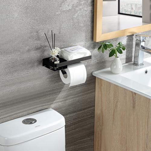 YIGII - YIGII Toilet Paper Holder with Shelf - Toilet Paper Holder Wall Mount Toilet Roll Holder with Wipes Storage for Bathroom Stainless Steel Matte Black