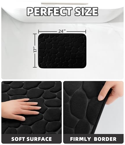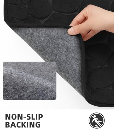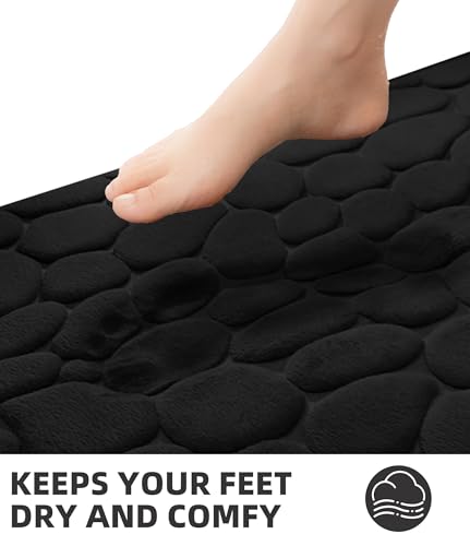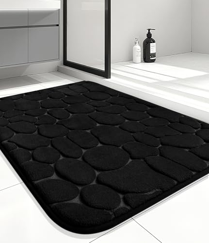 YIHOUSE - YIHOUSE Memory Foam Bath Mat Cobblestone Bathroom Rugs Super Water Absorbent Bath Mats for Bathroom Machine Washable Bath Rugs(17 x 24,Black)