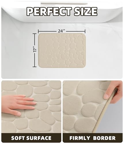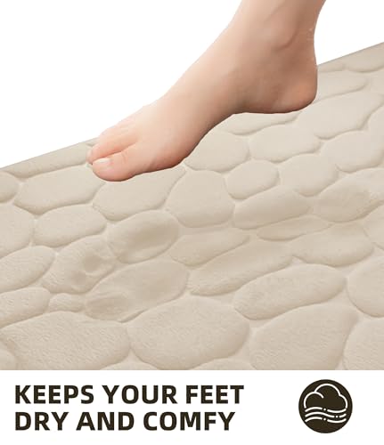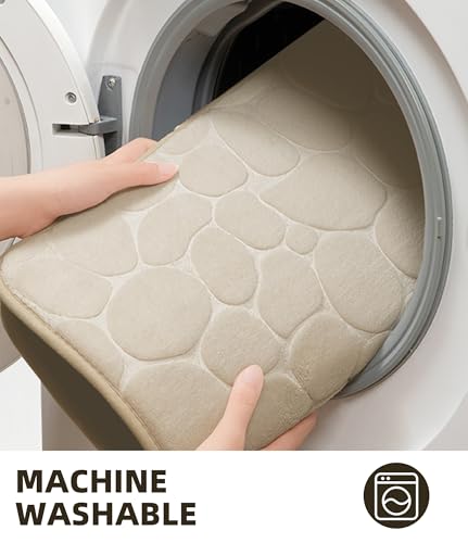YIHOUSE - YIHOUSE Memory Foam Bath Mat Cobblestone Bathroom Rugs Super Water Absorbent Bath Mats for Bathroom Machine Washable Bath Rugs(17x24,Khaki)