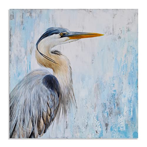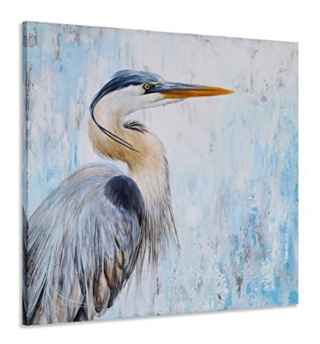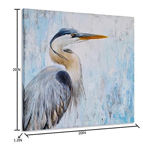 Yihui Arts - Yihui Arts Heron Canvas Wall Art - Blue and Grey Bird Paintings with Textured - Modern Coastal Pictures - Square Ocean Artwork for Living Room Bathroom Decor