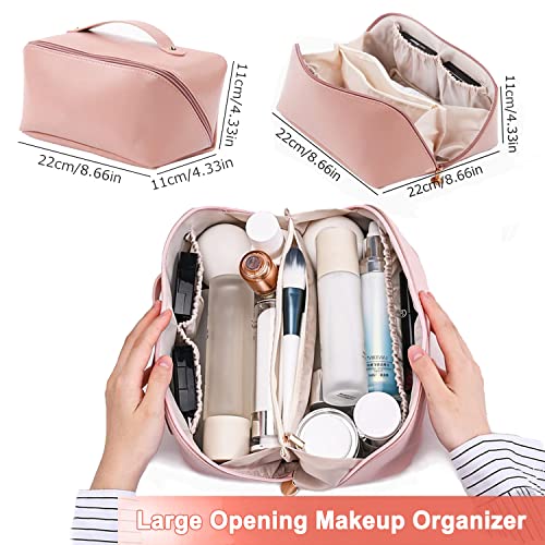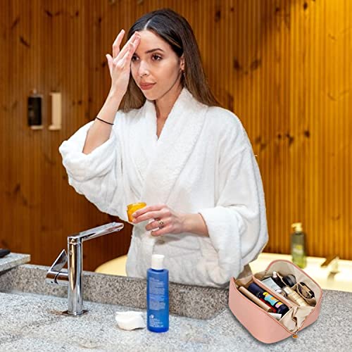 YIJBAO - Large Capacity Travel Cosmetic Bag For Women - 2022 New Double Layer Pu Leather Waterproof Makeup Bag Toiletry Bag Cosmetic Case For Skin Care, pink, cosmetic bag
