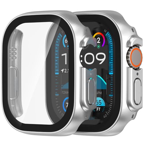 YIJDACASE - 2 in 1 Case for Apple Watch Screen Protector 49mm Ultra/Ultra 2 Accessories Built-in HD Tempered Glass Protective Face and Hard PC Bumper Cover Compatible iWatch